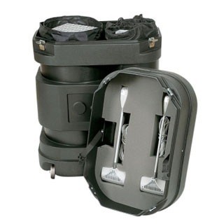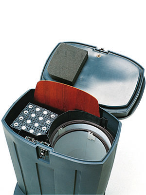 sehr stabiles Scherengittersystem (Eigenmarke) aus pulverbeschichtetem Aluminium (matt-schwarz), verschraubte Verbindungen, selbstschließend, inkl. Magnetschienen mit Tasche, rollbarem Transportkoffer mit Lampenfach, ca. Platzbedarf: 2600 x 2250 x 700 mm (BxHxT). System erhältlich in den Größen: 6, 9 und 12 Felder gebogen/gerade.