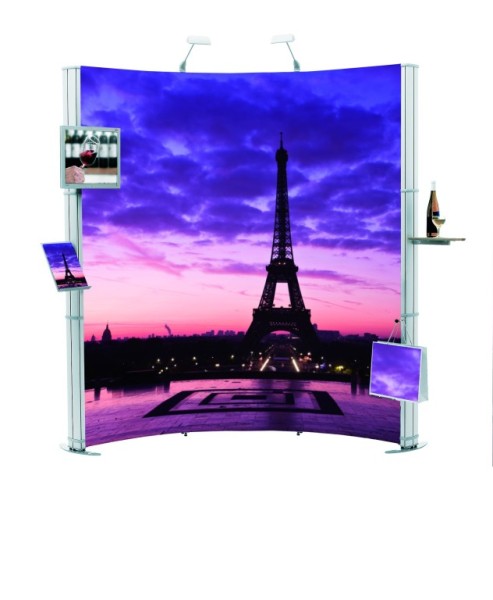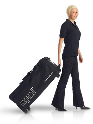 Textiles Faltdisplay vom Markenhersteller Expand, sehr leichtes und kompaktes Pop-Up System, der optionale Textildruck kann auch beim Transport fest an dem System bleiben, Set beinhaltet: Scherengittersystem 9 Felder gerade inkl. Transporttrolley, ca. Platzbedarf: 2250 x 2250 x 300 mm (BxHxT). System erhältlich in den Größen: 6, 9, 12 und 15 Felder gerade sowie 9 und 12 Felder gebogen.